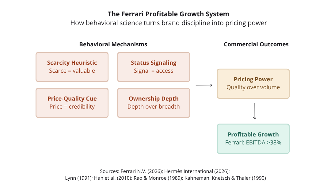 Ferrari did not become one of the most profitable businesses in automotive history by maximizing unit volume. It built a system in which racing creates meaning, scarcity protects price, personalization expands margin, and client selection improves future demand quality. That is the strategic lesson worth borrowing this week: profitable growth is not just a demand problem. It is a design problem — across brand, product, channel, and commercial incentives.